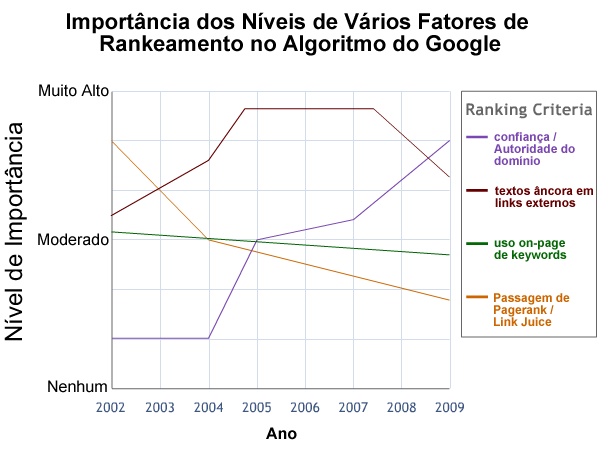 Ранее в этом году Рэнд Фишкин (SEOmoz) нарисовал график того, как он видел изменение веса факторов рейтинга за последние несколько лет :
